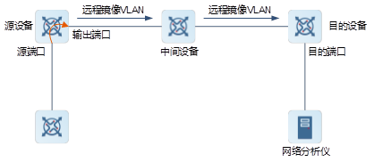 (3)   输出端口通过远程镜像VLAN将镜像报文输出到中间设备或者目的设备。