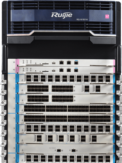 RG-N18000采用先进的CLOS多级多平面交换架构,实现转发与控制平分离,即能够配置独立的交换网板与独立的主控板,确保各端口间全线速无阻塞,提供持续的带宽升级能力和业务支撑能力。