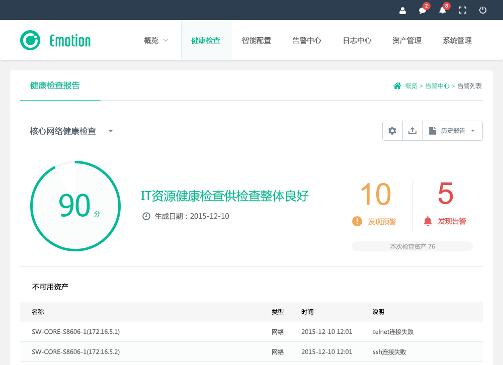• 健康检查:解决IT环境中的各类资产风险和问题,并通过自动化技术智能修复