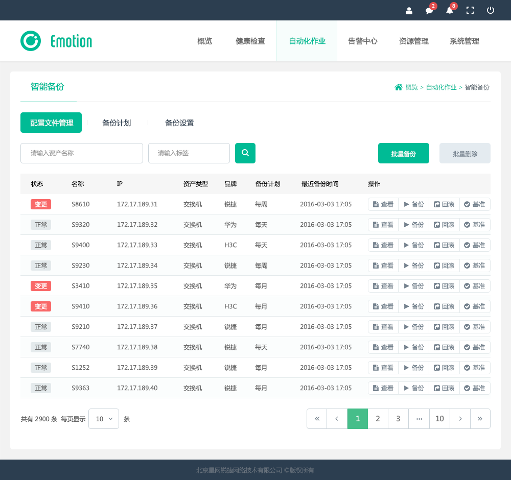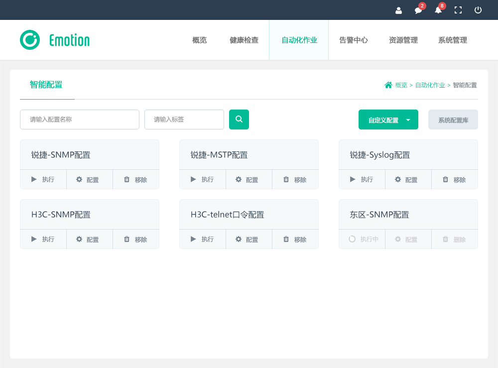 1、基于任务:基于健康检查、智能配置、智能备份的任务式管理。