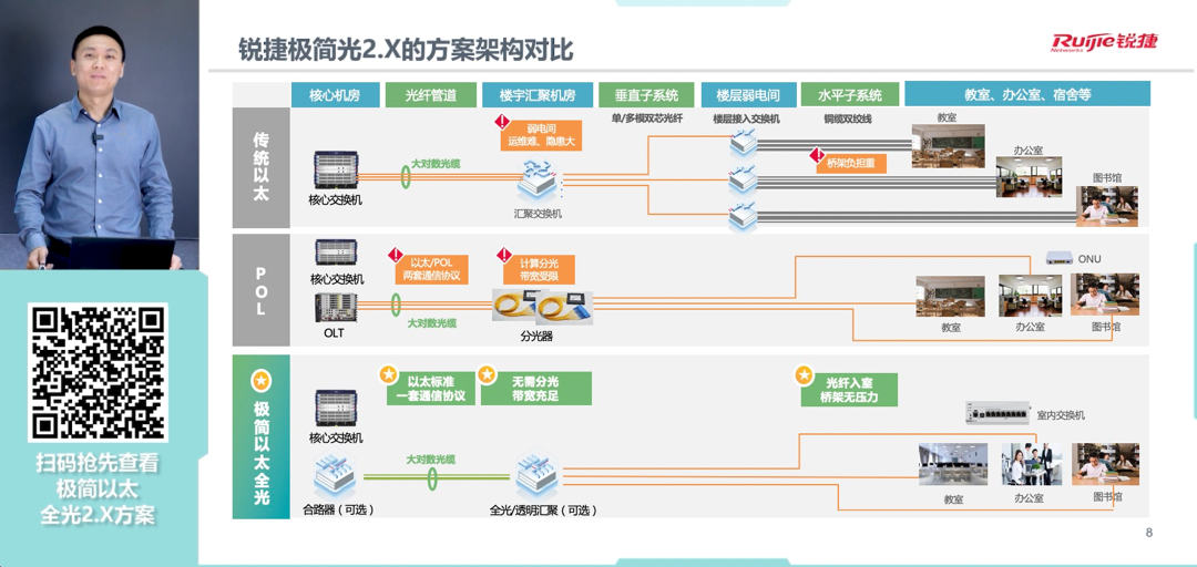 尊龙时凯网络高职教行业部总经理黄镇介绍尊龙时凯极简光2.X方案架构