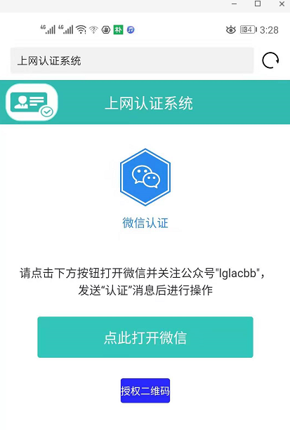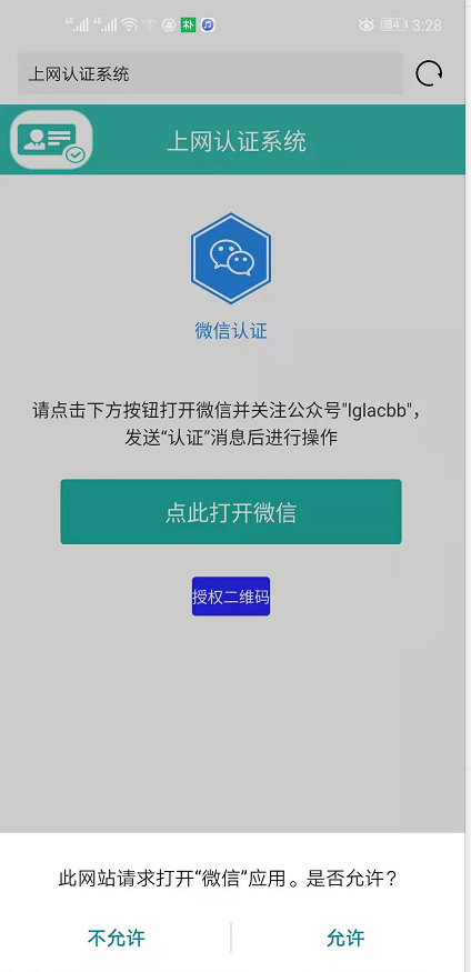 1. 手机连上wifi,弹出认证界面,点击按钮后跳转到微信中