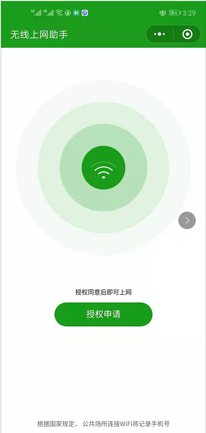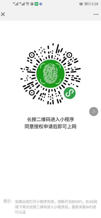1. 点击后跳转到小程序二维码完成授权后即可上网