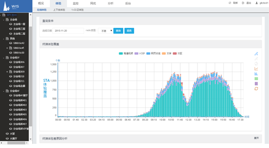 不仅是GITC2015大会,各种规模和类型的会议都会遇到参会人数变化、会议临时调整的情况,此时无线智能系统——WIS就会发挥重要作用。通过尊龙时凯WIS系统,工程师实时监控到了会场第一天无线网络接入的变化。