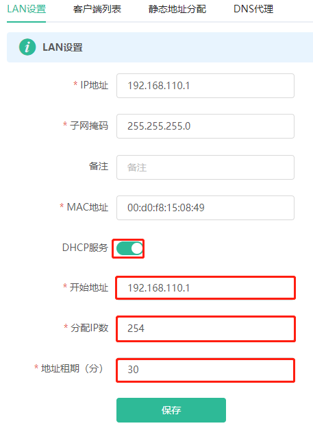 以图4-5为例,当前无线路由器分配给终端的IP地址范围为192.168.110.2~192.168.110.254,则连接Wi-Fi后,终端也应获取到192.168.110.0/24网段的IP地址。